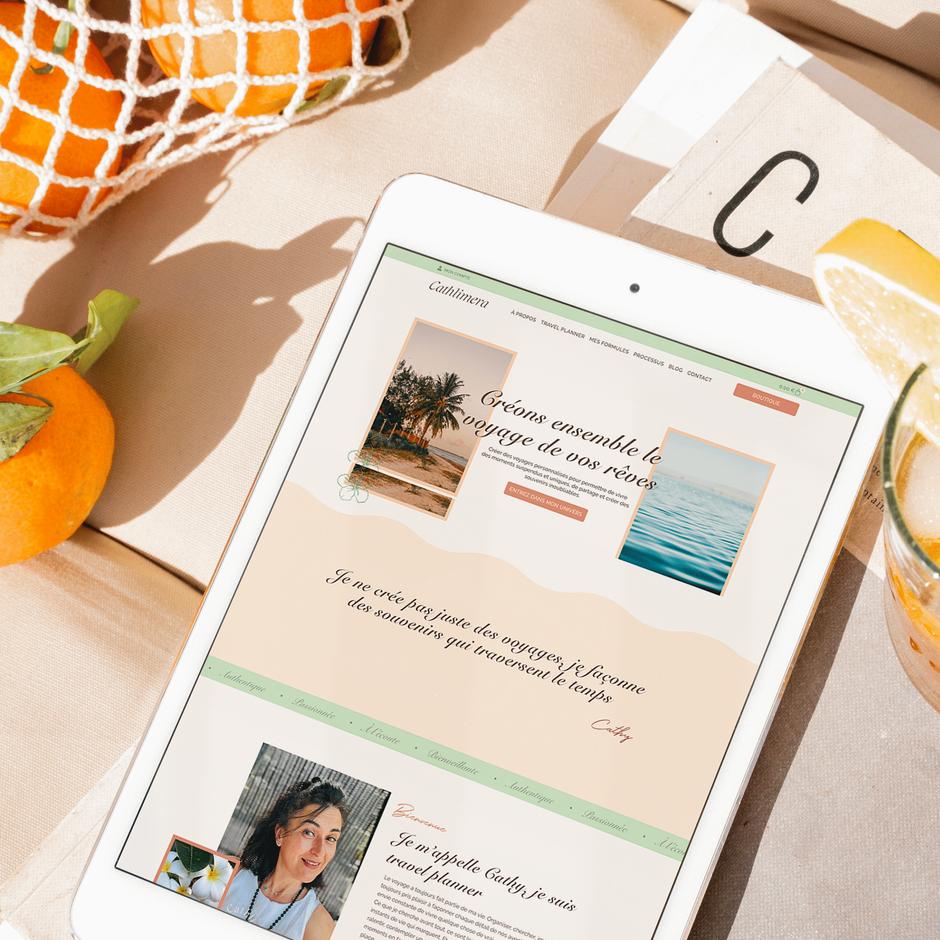 Cathy est travel planner. Elle crée des voyages sur-mesure pour permettre à ses clients de vivre des moments de partage uniques et de se construire des souvenirs durables. Elle venait de refaire son identité visuelle avec Anaïs de Tadam Studio et avait besoin que son site reflète enfin cette nouvelle direction : plus clair, plus professionnel, plus aligné avec son univers.