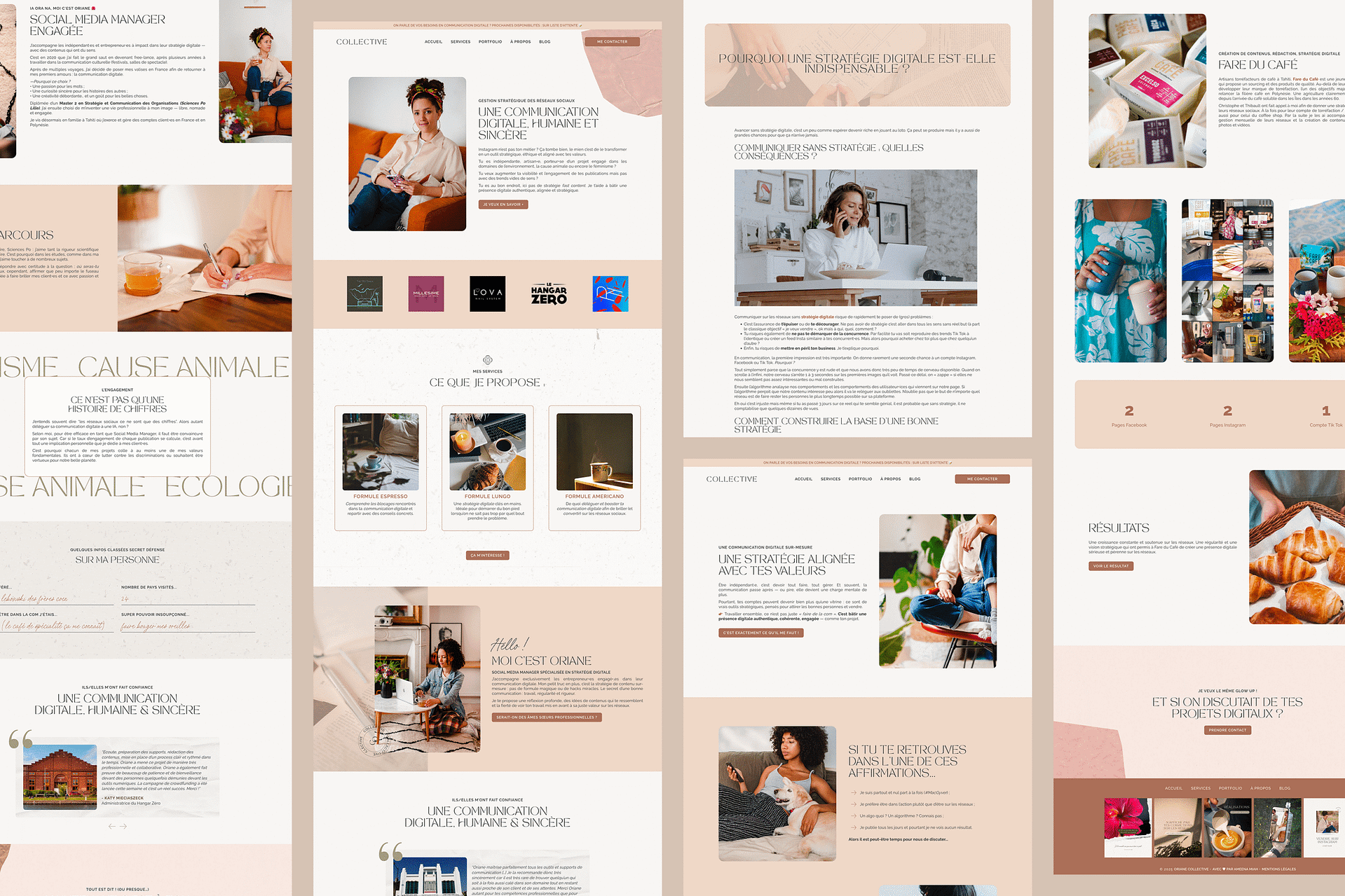 Avant notre collaboration, elle avait tenté de créer son site seule avec Elementor, sans jamais aller jusqu’au bout. Entre une identité visuelle qui ne lui parlait plus, une mise en page bancale et zéro plaisir à le faire, elle a fini par laisser le projet de côté. C’est en découvrant mon travail chez d’autres indépendantes qu’elle m’a contactée, avec l’envie d’avoir enfin un site à la hauteur de son expertise.